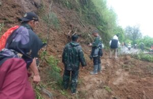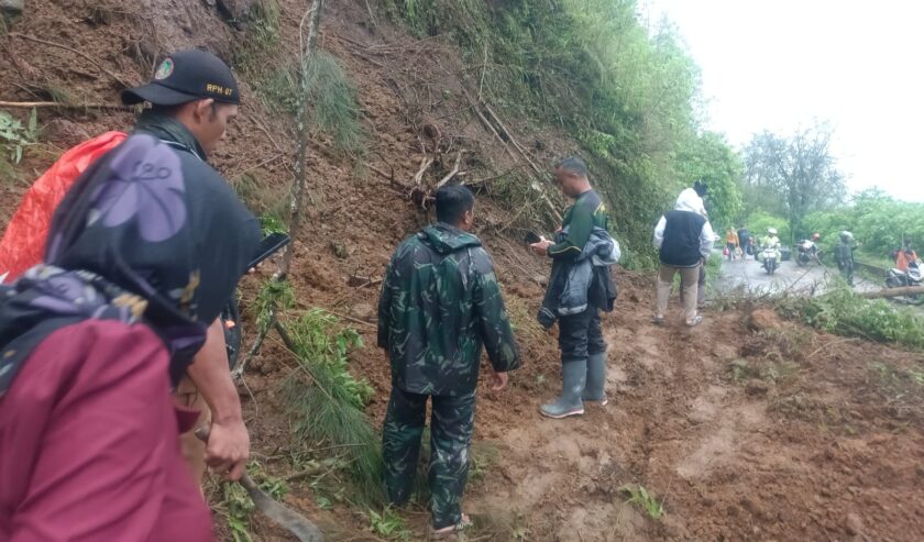 Hujan deras yang mengguyur sejumlah kawasan di Kabupaten Mojokerto, membuat jalur Pacet – Cangar dilaporkan longsor pada Senin (24/11/2025) siang.
