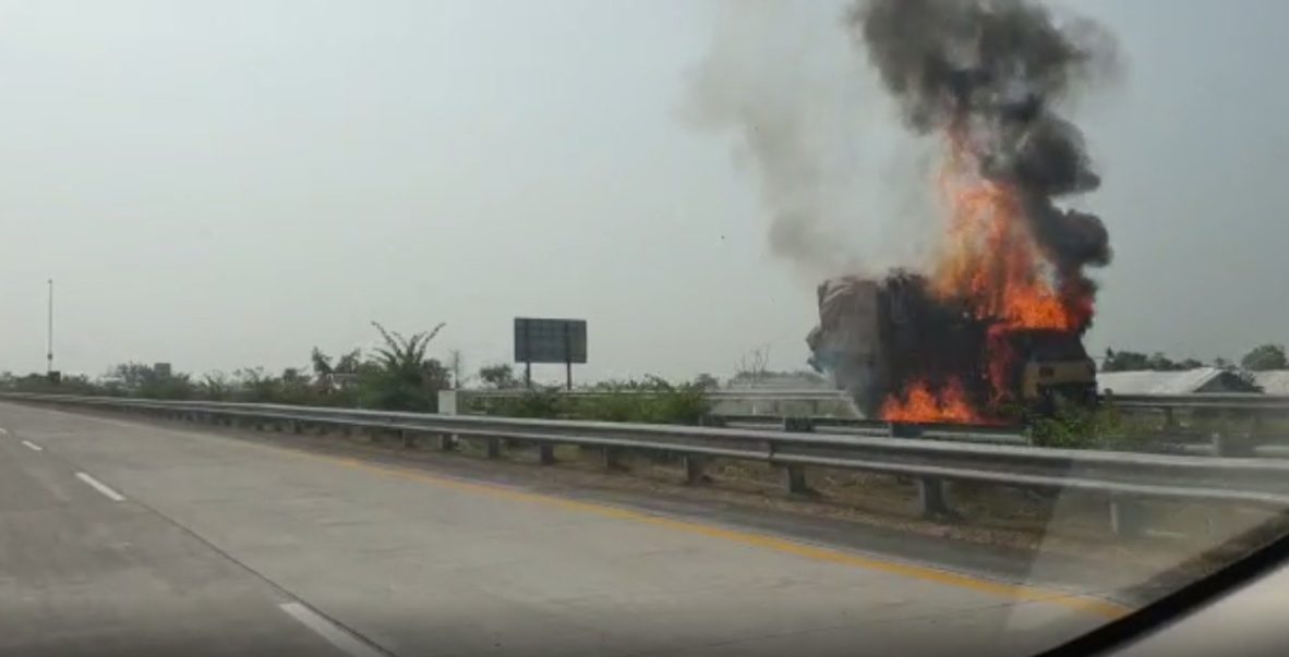 Truk Muat Kertas Terbakar di Tol Mojokerto-Jombang KM 700