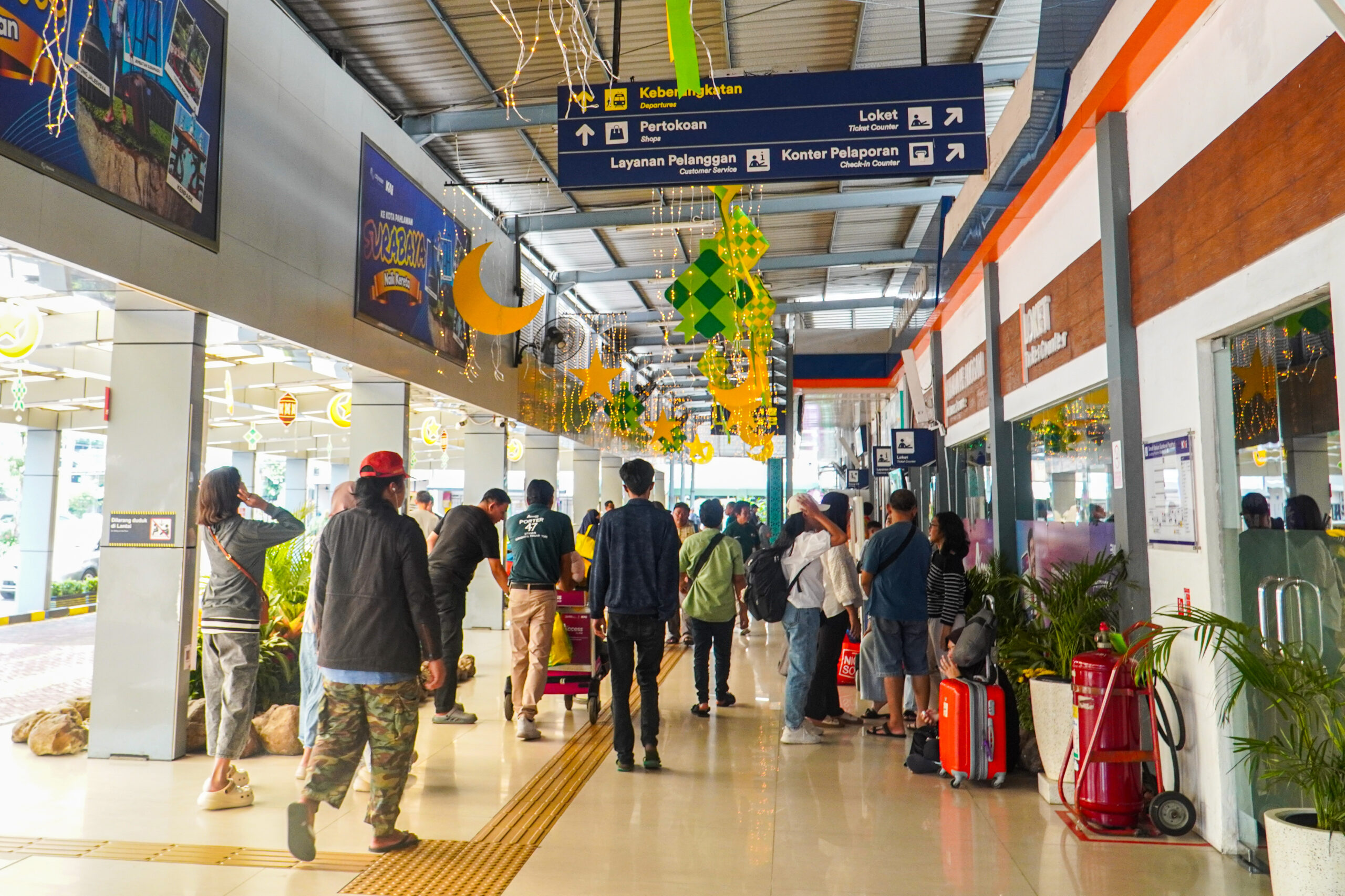 Di dalam area stasiun, suasana lebaran juga terasa dari adanya berbagai hiasan ornamen bertema Idulfitri yang dipasang di beberapa sudut stasiun.