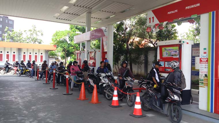 “Terutama pagi tadi, sekitar jam 6 sampai jam 9. Wah itu panjang sekali sepeda motor yang antre. Sampai ke jalan-jalan,” katanya.