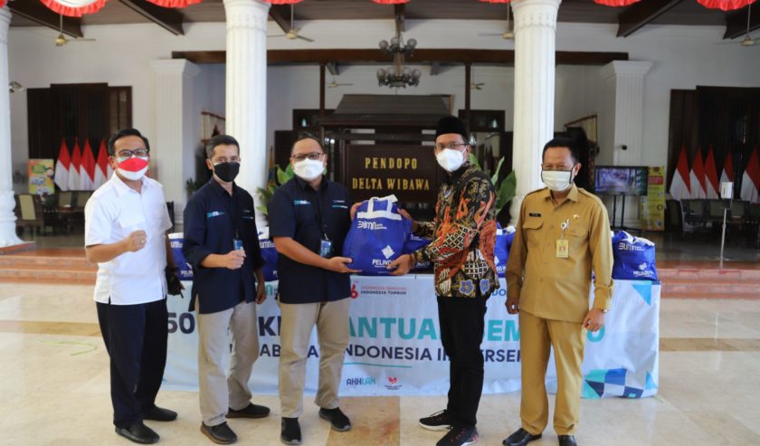 Pelindo III membagikan 1.500 paket sembako Penyerahan bantuan dilaksanakan di Pendopo Delta Wibawa dan diterima langsung oleh Ahmad Muhdlor Ali Bupati Sidoarjo, Senin (9/8/2021). Foto: Istimewa