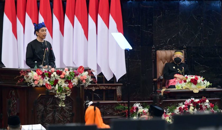 Joko Widodo Presiden dalam pidato Sidang Tahunan MPR RI menjelang ulang tahun ke-76 Kemerdekaan Indonesia, di Ruang Sidang Paripurna MPR RI, Senayan, Jakarta, Senin (16/8/2021). Foto: Biro Pers Setpres
