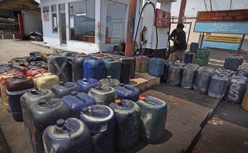 Ilustrasi - Pekerja bersiap mengisi deretan jeriken milik para nelayan dengan Solar bersubsidi di Pelabuhan Perikanan Nusantara (PPN) Karangantu, Serang, Banten, Rabu (31/8/2022). Foto: Antara