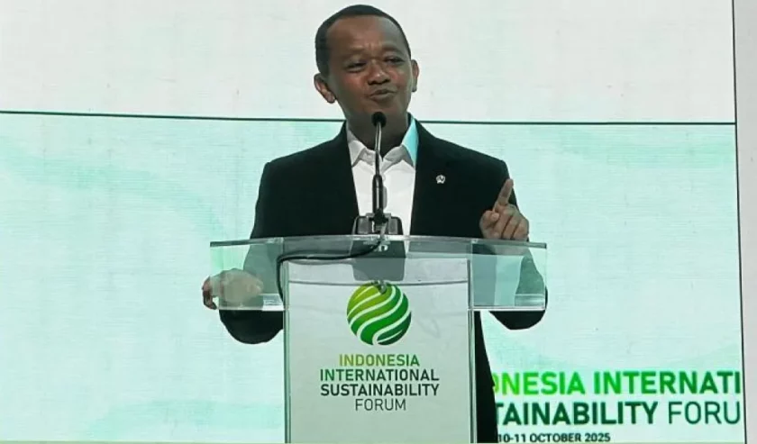 Bahlil Lahadalia Menteri Energi dan Sumber Daya Mineral (ESDM) memberi keterangan dalam acara Indonesia International Sustainability Foum di Jakarta, pada Jumat (10/10/2025). Foto: Antara