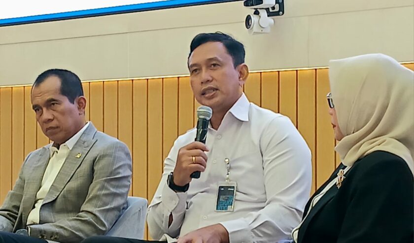 Ahmad Rizal Ramdhani (kemeja putih) Direktur Utama Perum Bulog dalam Forum Legislasi di gedung DPR RI Senayan Jakarta, Rabu (26/11/2025). Foto: Faiz Fadjarudin suarasurabaya.net
