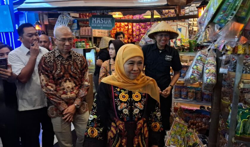 Khofifah Indar Parawansa Gubernur Jawa Timur saat mengunjungi tenant-tenant yang ada di PRJ 2025, Jumat (10/10/2025). Foto: Akira suarasurabaya.net