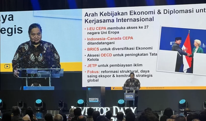 Airlangga Hartarto Menteri Koordinator (Menko) Bidang Perekonomian memberi paparan di Jakarta, Kamis (9/10/2025). Foto: Antara.