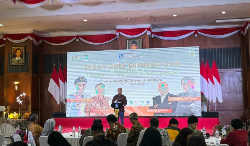 “Saya mewakili Pak Wali Kota menyampaikan salam hormat memilih Surabaya menjadi tempat rakernas dan sarana studi marketing dan kami dberi kesempatan memamerkan UMKM dan wisata,” bebernya, Jumat (5/12/2025) malam.