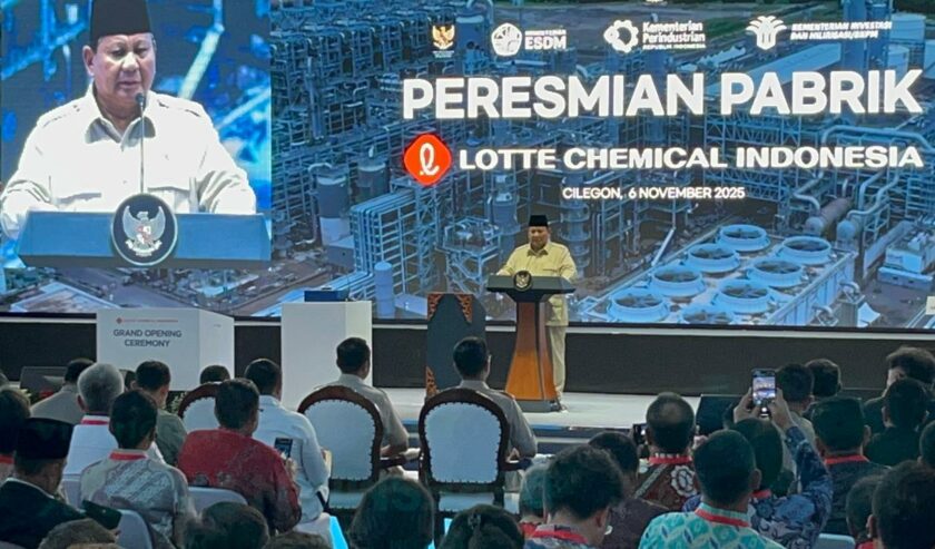 Prabowo Subianto Presiden, hari ini, Kamis (6/11/2025), meresmikan Kompleks Petrokimia Hilir milik PT Lotte Chemical Indonesia yang ada di wilayah Kota Cilegon, Provinsi Banten.