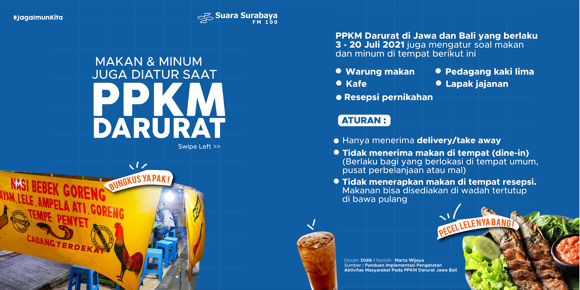 Demi mencegah penularan Covid-19, berbagai aturan baru diterapkan dalam PPKM Darurat. Salah satunya adalah aturan makan dan minum, dimana tempat makan hanya boleh melayani take away atau membawa pulang makanan dan tidak memperkenankan untuk dine in atau makan di tempat. Simak dalam infografis berikut.