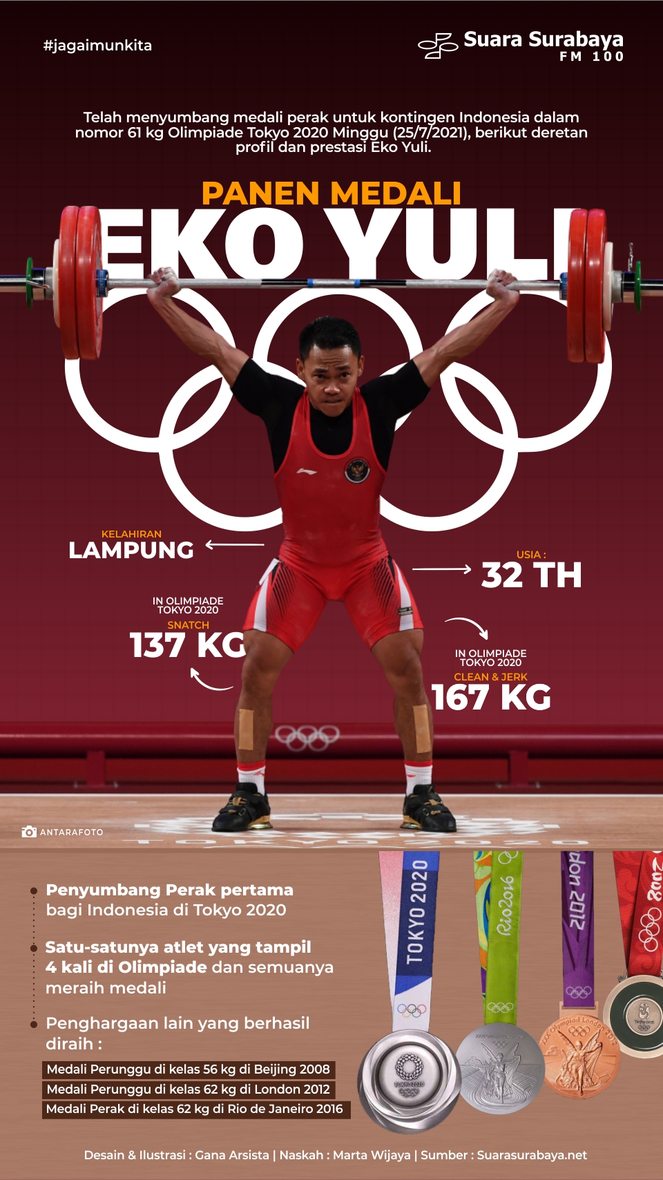 Nama Eko Yuli menjadi topik perbincangan hangat karena keberhasilannya menyumbang medali perak pada olimpiade Tokyo 2020. Simak profilnya dalam infografis berikut.