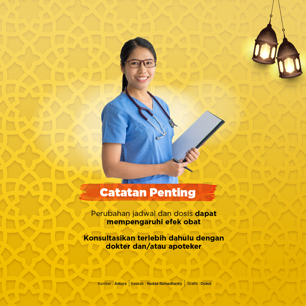 Simak #Infografiss berikut untuk mengetahui cara mengatur konsumsi obat saat berpuasa!