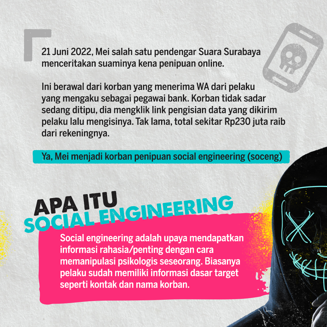 Salah satu korbanyya yakni Mei, salah satu pendengar Suara Surabaya menceritakan suaminya kena penipuan online yang mengakibatkan kerugian Rp230 juta