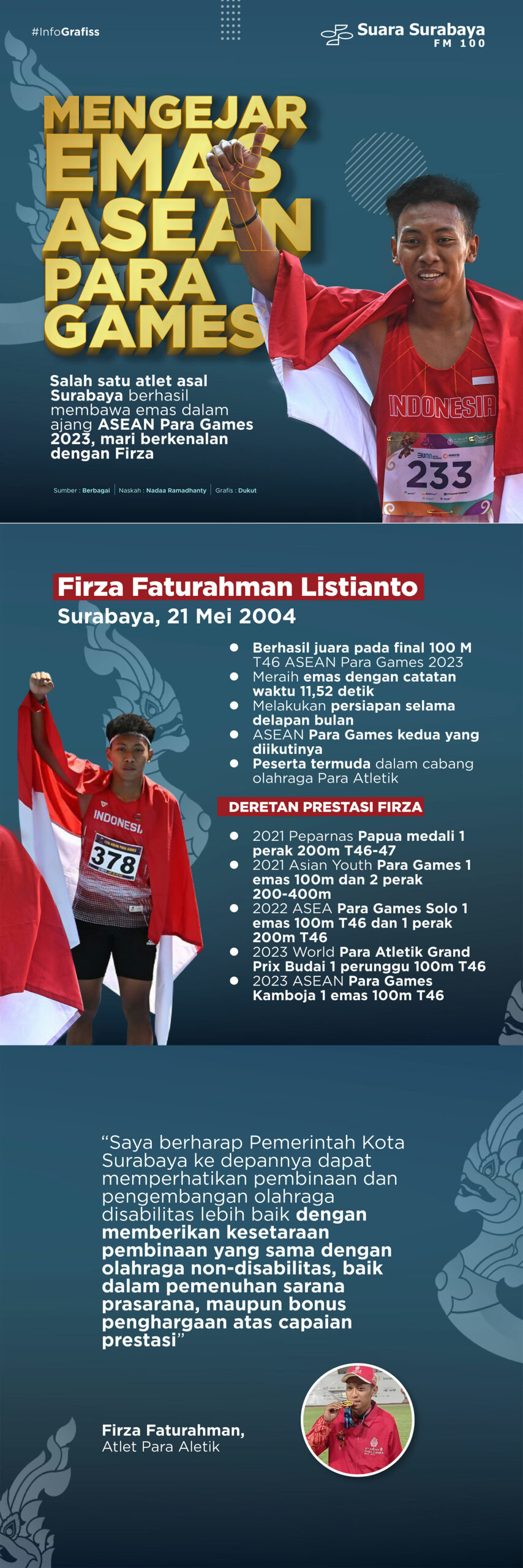 Firza Faturahman Listianto salah satu atlet asal Surabaya berhasil membawa emas dalam ajang ASEAN Para Games 2023