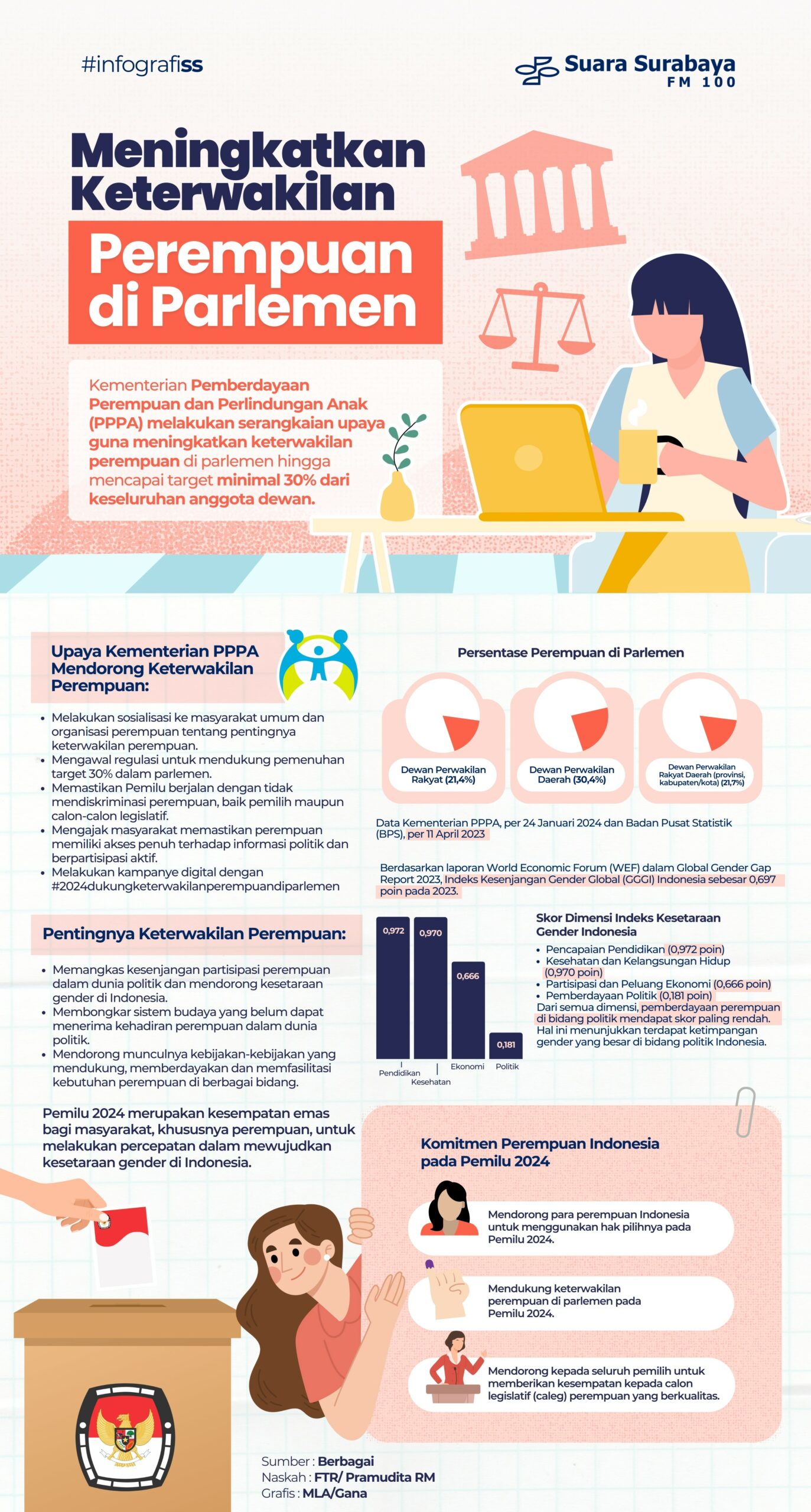 #suarasurabayamedia #suarasurabaya #infografiSS #perempuan #PPPA #parlemen #2024dukungketerwakilanperempuandiparlemen