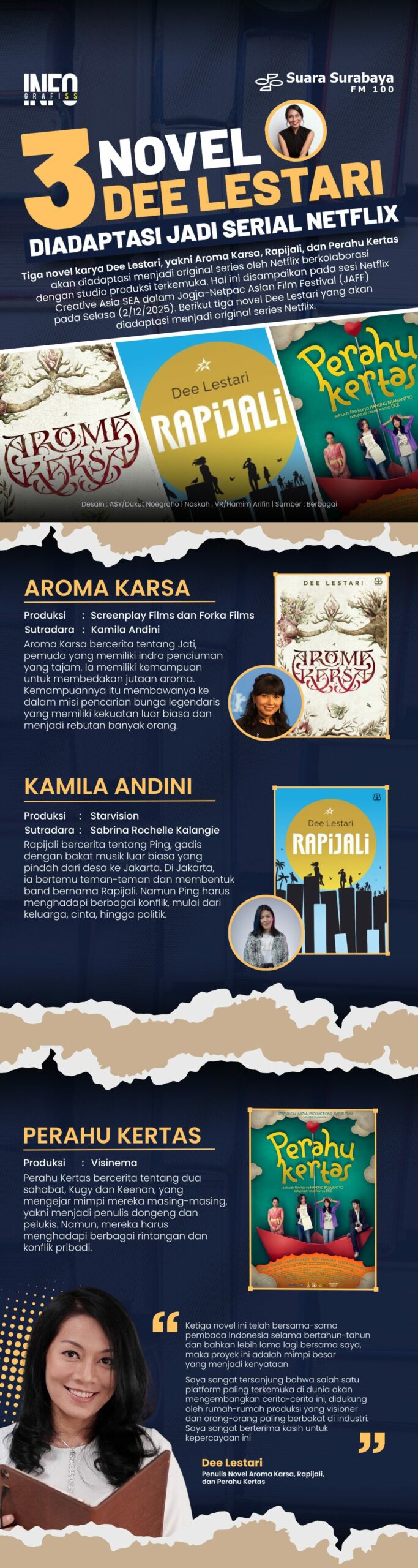 Tiga novel karya Dee Lestari, yakni Aroma Karsa Rapijali, dan Perahu Kertas akan diadaptasi menjadi original series oleh Netflix.