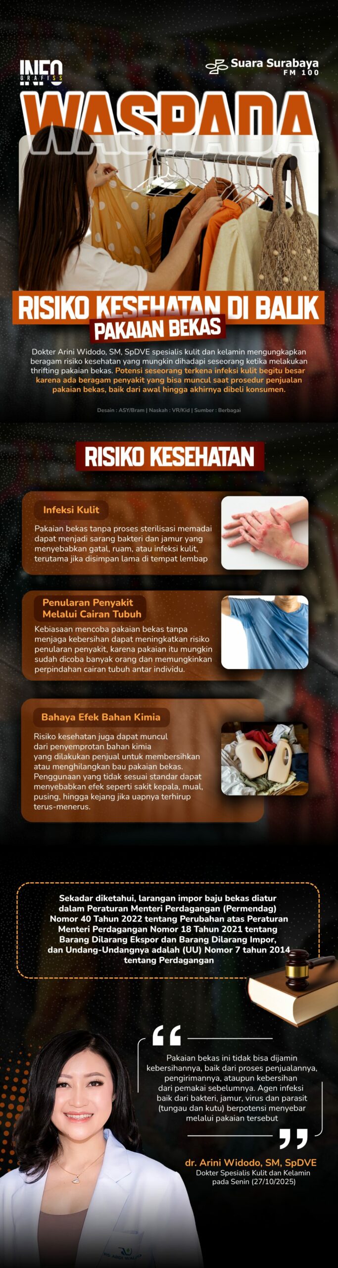 Menurut Arini Widodo, dokter spesialis kulit dan kelamin, kegiatan membeli pakaian bekas atau thrifting dapat memicu sejumlah masalah kesehatan. Oleh karena itu, penting untuk berhati-hati terhadap risiko di balik tren belanja ini.