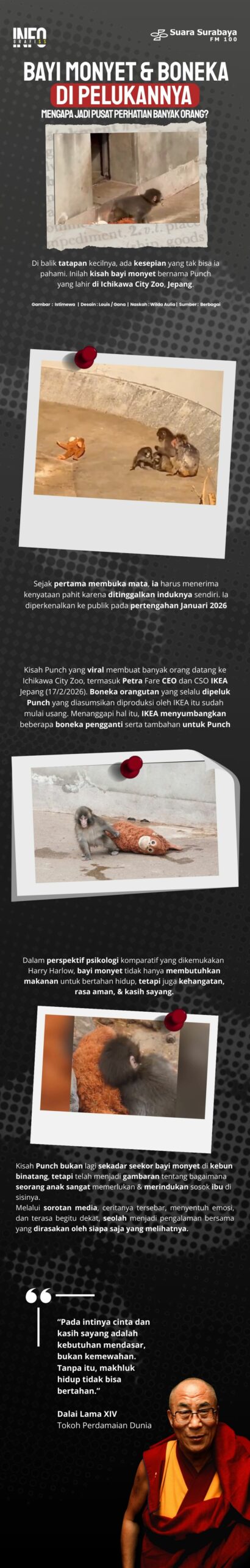 Di balik tatapan kecilnya, ada kesepian yang tak bisa ia pahami. Inilah kisah bayi monyet bernama Punch yang lahir di Ichikawa City Zoo, Jepang. Sejak pertama membuka mata, ia harus menerima kenyataan pahit karena ditinggalkan induknya sendiri. Ia diperkenalkan ke publik pada pertengahan Januari 2026.