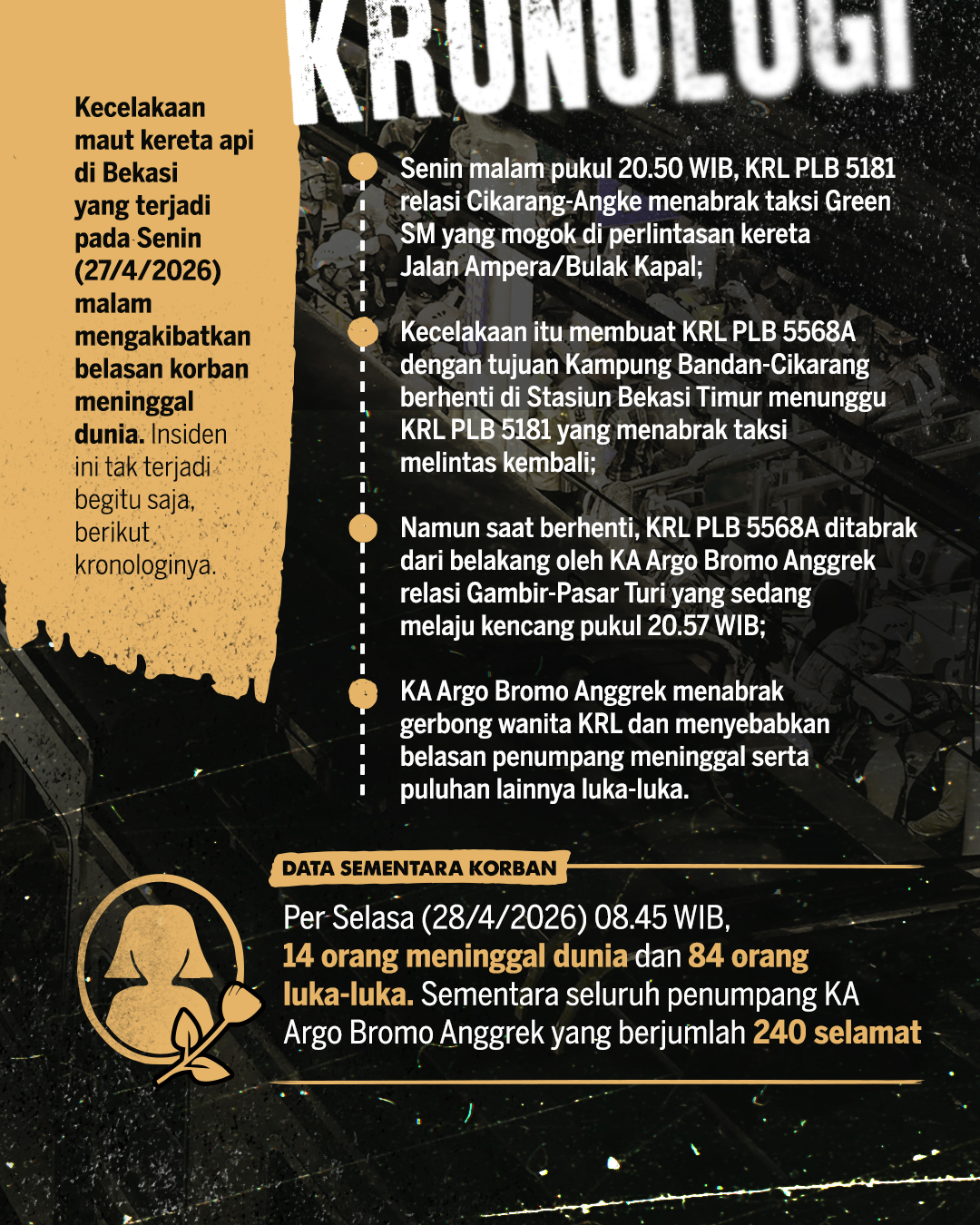 Insiden ini terjadi pada Senin (27/4/2026) malam mengakibatkan belasan korban meninggal dunia. Berikut kronologinya