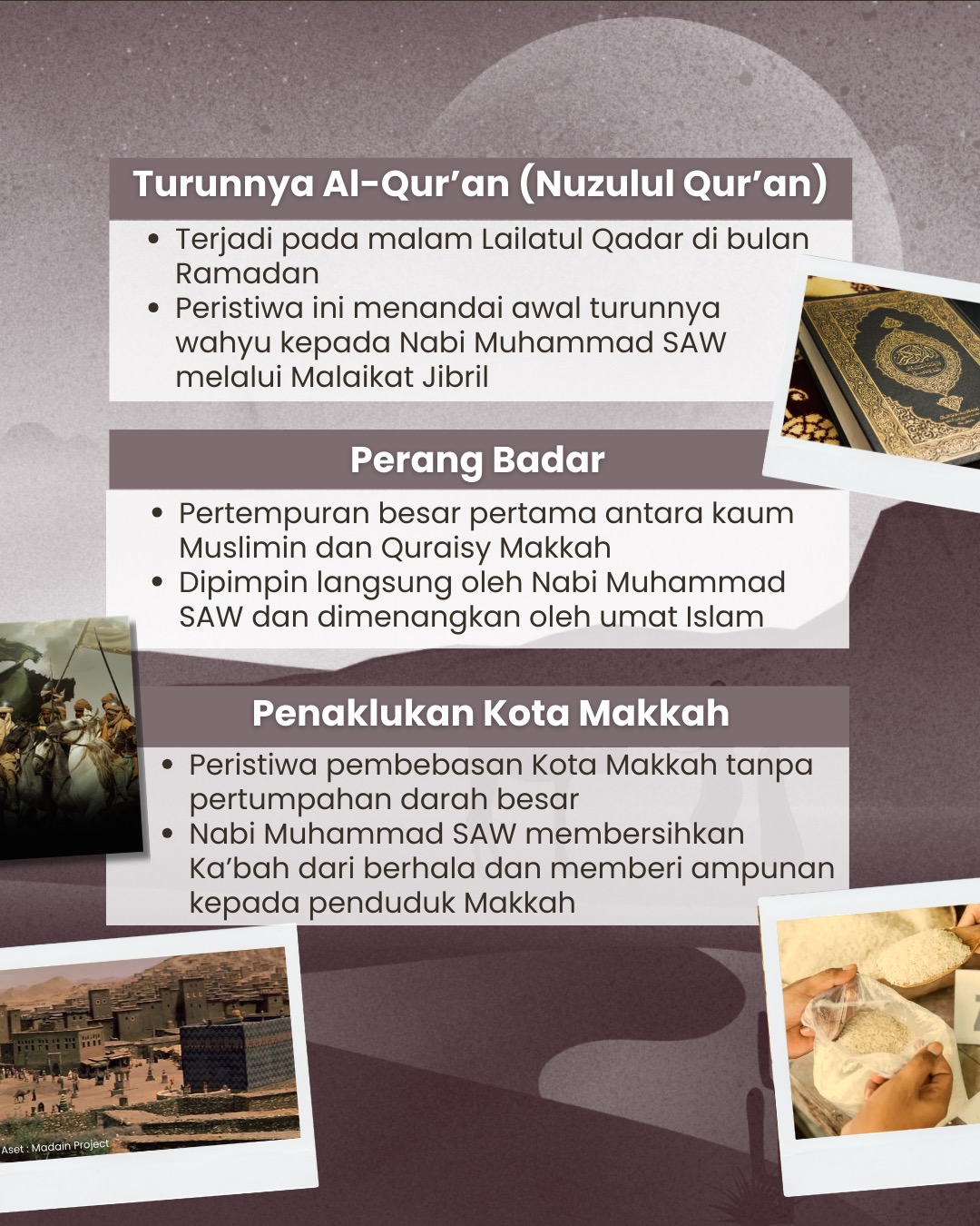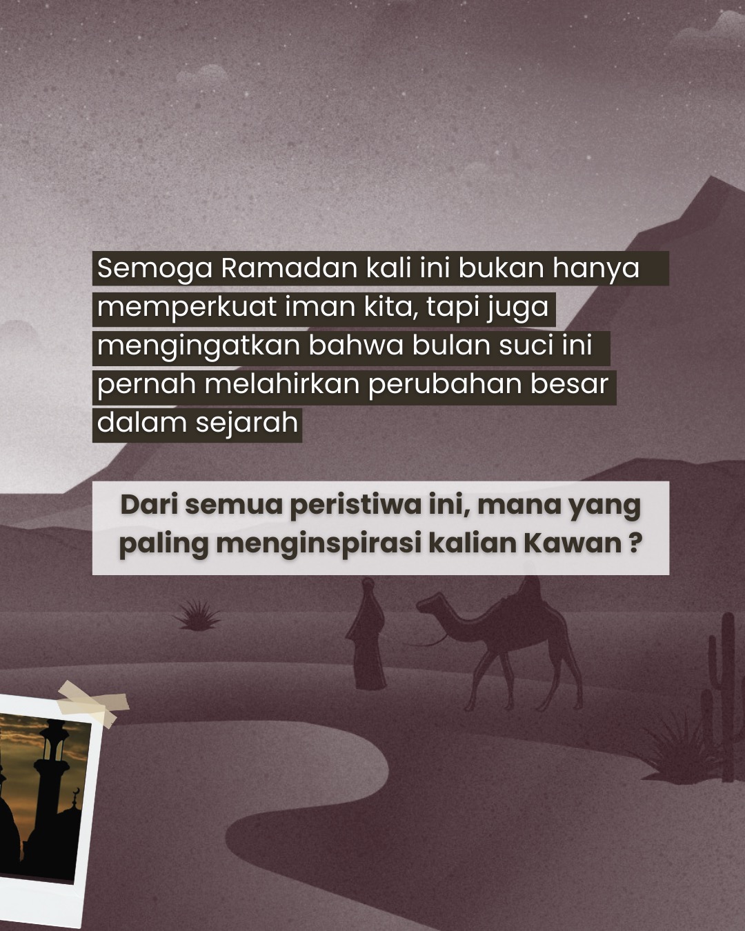 Ramadan bukan hanya bulan puasa. Dalam sejarah Islam, bulan suci ini menjadi saksi turunnya Al-Qur’an, kemenangan besar dalam Perang Badar, hingga peristiwa Penaklukan Kota Makkah.