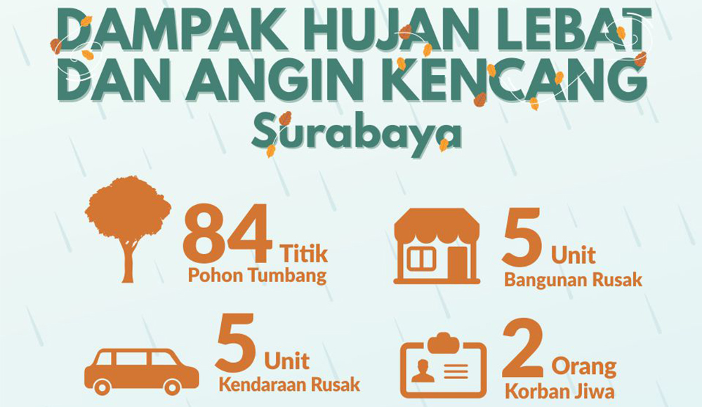 Dampak Hujan Lebat dan Angin Kencang Surabaya