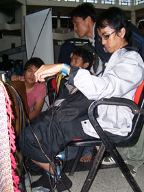 2. FITRIANDI satu diantara mahasiswa ITS yang sedang mencoba alat ECG ini.