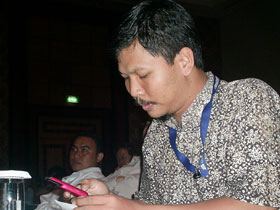 2. Seorang peserta seminar mencoba menggunakan aplikasi Next Generation Network.