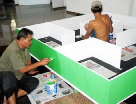 Kini di lokasi pelaksanaan KRI-KRCI, panitia sibuk melakukan beberapa persiapan, diantaranya ditutupnya beberapa kaca dibagian atas Graha ITS, yang sinarnya dikhawatirkan dapat mempengaruhi sensor dari robot-robot peserta.