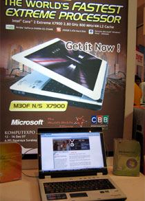 – Laptop tercepat dunia berkekuatan Intel Core 2 Duo X7900, 2,80 GHz,/4MB L2 Cache/800 MHz, chipset Intel 965 PM. Laptop tercepat ini bisa dicoba di arena pameran Komputexpo 2007