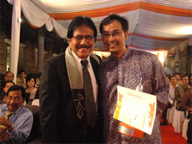 – SOFYAN DJALIL (kiri) Menteri Komunikasi dan Informatika bersama TEGUH PRASETYA (kanan) Group Head Value Added Services & Mail-Messaging PT Indosat