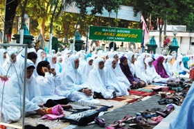 – Jamaah Masjid Agung Lumajang menggelar sholat gerhana.