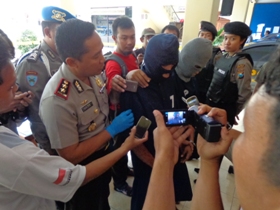 – AKBP Aries Syahbudin menunjukkan tersangka dan barang-bukti kejahatannya.