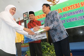 -. Menteri Sosial RI Khofifah Indar Parawansa saat kunjungan kerja di Lumajang.
