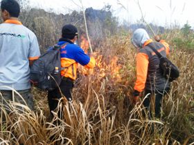 “Sejak mendapatkan laporan terjadinya kebakaran hutan pukul 10.00 WIB, kami langsung mengerahkan personel Tim Reaksi Cepat (TRC) Bencana ke lokasi kebakaran untuk bergabung dengan 25 personel lainnya dari Perhutani/ Unsur TNI/Polri, relawan Laskar Hijau dan masyarakat. Pemadaman kami lakukan dengan cara tradisional menggunakan gebyok. Karena, medan yang sulit tidak memungkinkan bagi kami mengirimkan mobil pemadam ke lokasi,” katanya.