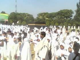 Ribuan siswa dari 4 lembaga pendidikan setingkat SD sampai SMA dibawah naungan Yayasan Nurul Masyithah belajar berhaji. Mereka mengikuti bimbingan manasik haji yang dilaksanakan di Alun-Alun Kabupaten, Sabtu (19/9/2015).