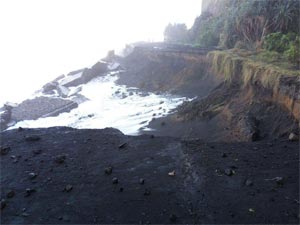 “Abrasi dari hantaman gelombang tinggi dan keras itu membuat plengsengan penahan badan jalan ambrol. Badan jalan jadi terkikis hingga ada satu titik yang nyaris habis. Hanya tersisa sedikit dan itu pun hanya bisa dilalui kendaraan roda dua,” katanya.