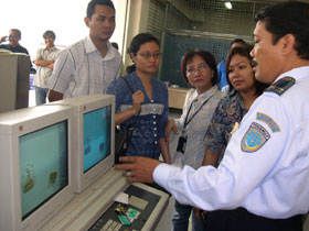 2. Crew SS Media mendapat penjelasan petugas X-Ray di gudang cargo internasional Bandara Juanda.