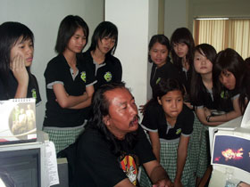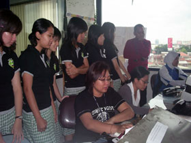 2. Rombongan Siswi Santa Maria saat sedang asyik mendengar penjelasan TOTOK reporter suarasurabaya.net soal dapur internet.