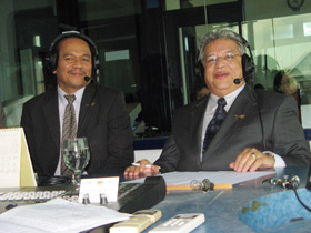 1. YB DATUK SERI TENGKU ADNAN Menteri Pelancong Malaysia (kanan) didampingi M RAZALI DAUD Deputy Director General Tourism Malaysia saat talk show di SS.