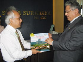Sementara itu usai acara talk show di studio SS, dilanjutkan saling menukar cendera mata. ERROL JONATHANS Direktur Suara Surabaya Media memberikan sebuah cetakan batik kepada Yang Berhormat DATUK SERI TENGKU ADNAN BIN TENGKU MANSOR Menteri Pelancong Malaysia. Sebaliknya ERROL pun menerima sebuah buku berjudul “Malaysia: Celebrating 50 Years Of Nationhood” dari DATUK.(ipg/ipg)