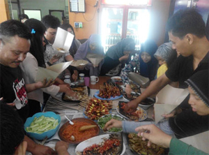 Setelah penutupan acara, suasana mulai riuh dan hidangan yang sudah tersedia langsung diserbu dan ludes seketika. Acara makan bersama yang diselingi dengan senda guraupun makin mempererat suasana siang yang mendung ini.