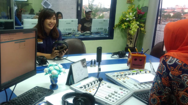 Elvira Rosa Yuniaputri Asisten Retail Funding Bank Mandiri Region VIII/Jawa 3 saat on air di Radio Suara Surabaya. Foto: Denza suarasurabaya.net