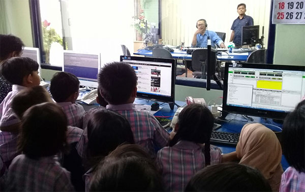 Rabu (28/3/2018), ruang Gate Keeper Radio Suara Surabaya mendadak ramai. Sebanyak 16 anak asyik mengamati layar komputer dan berusaha memencet-mencet keyboard atau barang seadanya.