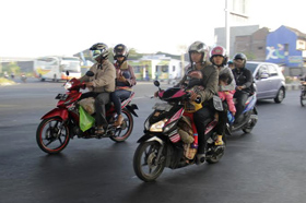 Sama seperti tahun-tahun sebelumnya, para pengendara sepeda motor juga masih tampak banyak yang kelebihan beban muatan. Mereka juga masih banyak yang berboncengan lebih dari dua. (bry/fik)