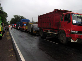 – Jalur Grati Pasuruan yang merupakan penghubung utama bagi kendaraan dari Surabaya ke arah Banyuwangi diblokade warga. Akibatnya jalur sempat lumpuh selama 8 jam