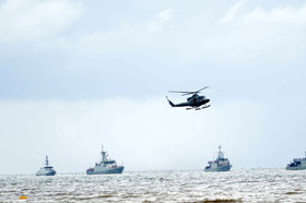 Kapal-kapal perang milik TNI Angkatan Laut itu memimpin parade sailing pass, disaksikan Presiden Yudhoyono, sejumlah menteri Kabinet Indonesia Bersatu II, tamu undangan dan masyarakat Raja Ampat.