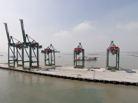 Dia menambahkan, pada dermaga curah kering sepanjang 250 meter tersebut, nantinya akan dipasang 2 unit Ship Unloader dengan dilengkapi fasilitas conveyor dan wirehouse. Pada tahap awal gudang curah kering akan dibangun diatas tanah seluas +8 hektar.
