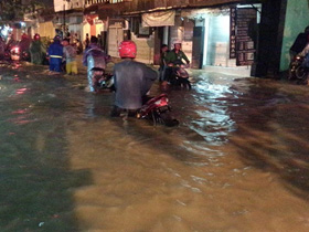 Hujan deras yang mengguyur sejak petang tadi, Kamis (18/12/2014) membuat sejumlah jalur di Surabaya tergenang air.