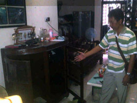 – Erwin Suharto pemilik rumah menunjukkan lemari tempat penyimpanan cincin permata yang dibawa kabur oleh pelaku.