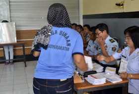 -Warga binaan rutan Medaeng saat pencoblosan Pileg 2014.